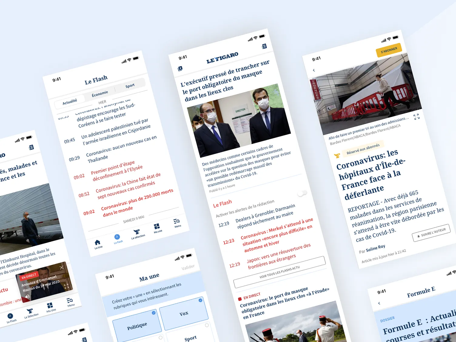 Le Figaro’s mobile app, used daily by millions of readers, needed to be updated to reflect the newspaper’s new 2020 brand identity and evolving design system across its digital services.